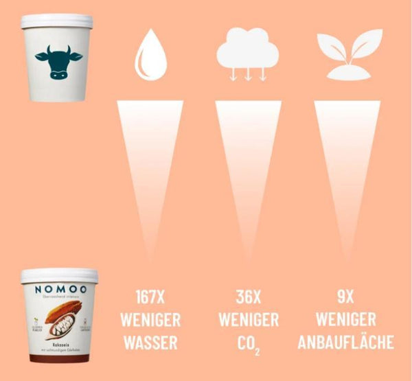 Did you know that your choice of food can have a greater impact on the climate than your choice of transport? That's why we just want to make your moments of pleasure more sustainable, without you having to do without. We think ice cream is climate-friendly - without any cow. So we not only offer you an outstanding taste. Thanks to the plant-based recipe, you protect our environment and our climate with every spoon of NOMOO.
